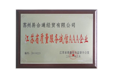 • 江蘇省質量服務誠信AAA企業